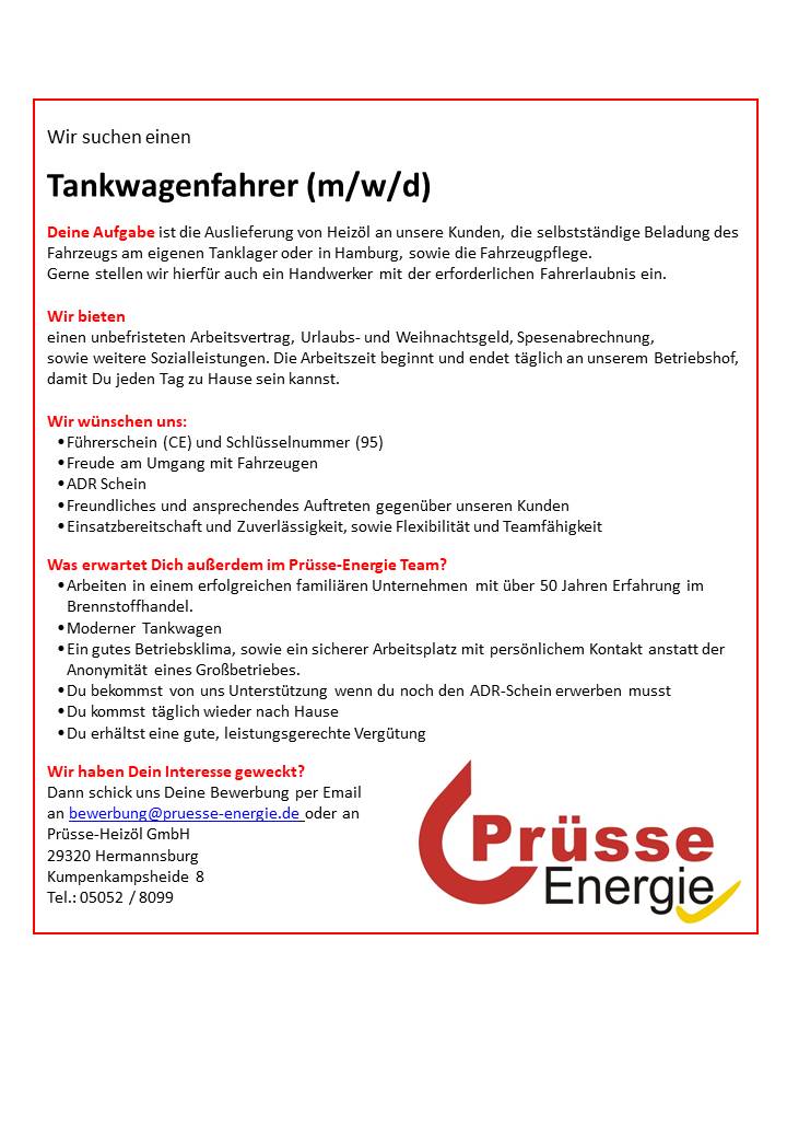 Tankwagenfahrer (m/w/d)